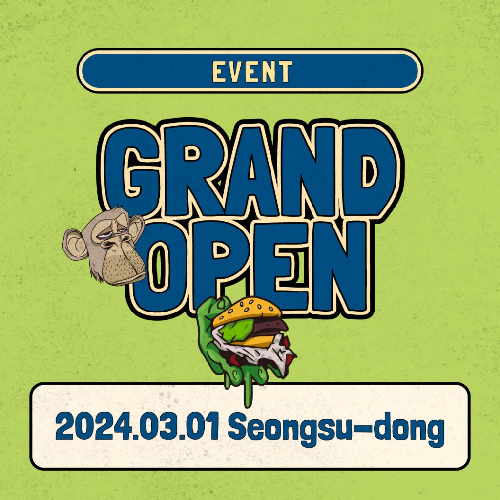 Bored & Hungry Seoul Grand Opening is on March 1st 🐵 With Award winning burger recipe from GMA in 2022.🔥Grand opening event📍First 10 customers per day will receive a free body tonic.📍Bored & Hungry mutant ape key-ring will be gifted to all customers (until out of stock)